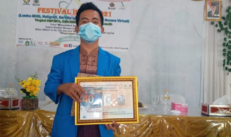 Siwa MAN 1 Kota Prabumulih, Arya Diwantara, berhasil meraih juara 2 pada lomba Kaligrafi se-Kota Prabumulih dalam rangka Festival ISHUM 2021 yang diselenggarakan SMAIT Ishlahul Ummah. Jum’at, (05/03).